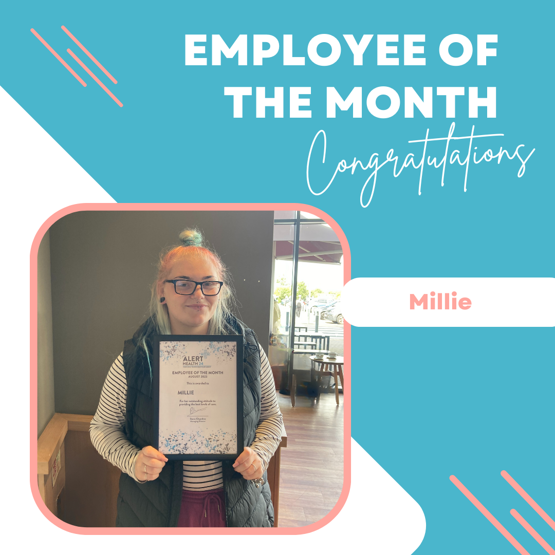 Thanks once again to Millie and congratulations on being Alert Health 24's August Employee of the Month!