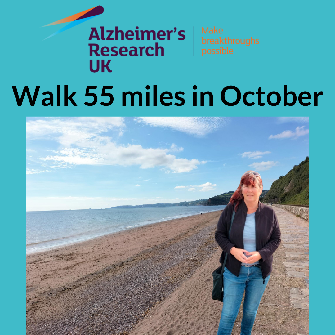 It was fantastic to hear from one of our support workers, Doreen, about how she is raising money and awareness for Alzheimer’s Research.Doreen lives in Teignmouth and is going to be walking 55 miles throughout October.