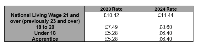 The national minimum wage is set to increase on 1st April 2024 to the rates outlined below. Legally this is the minimum amount a person can be paid per hour of work.